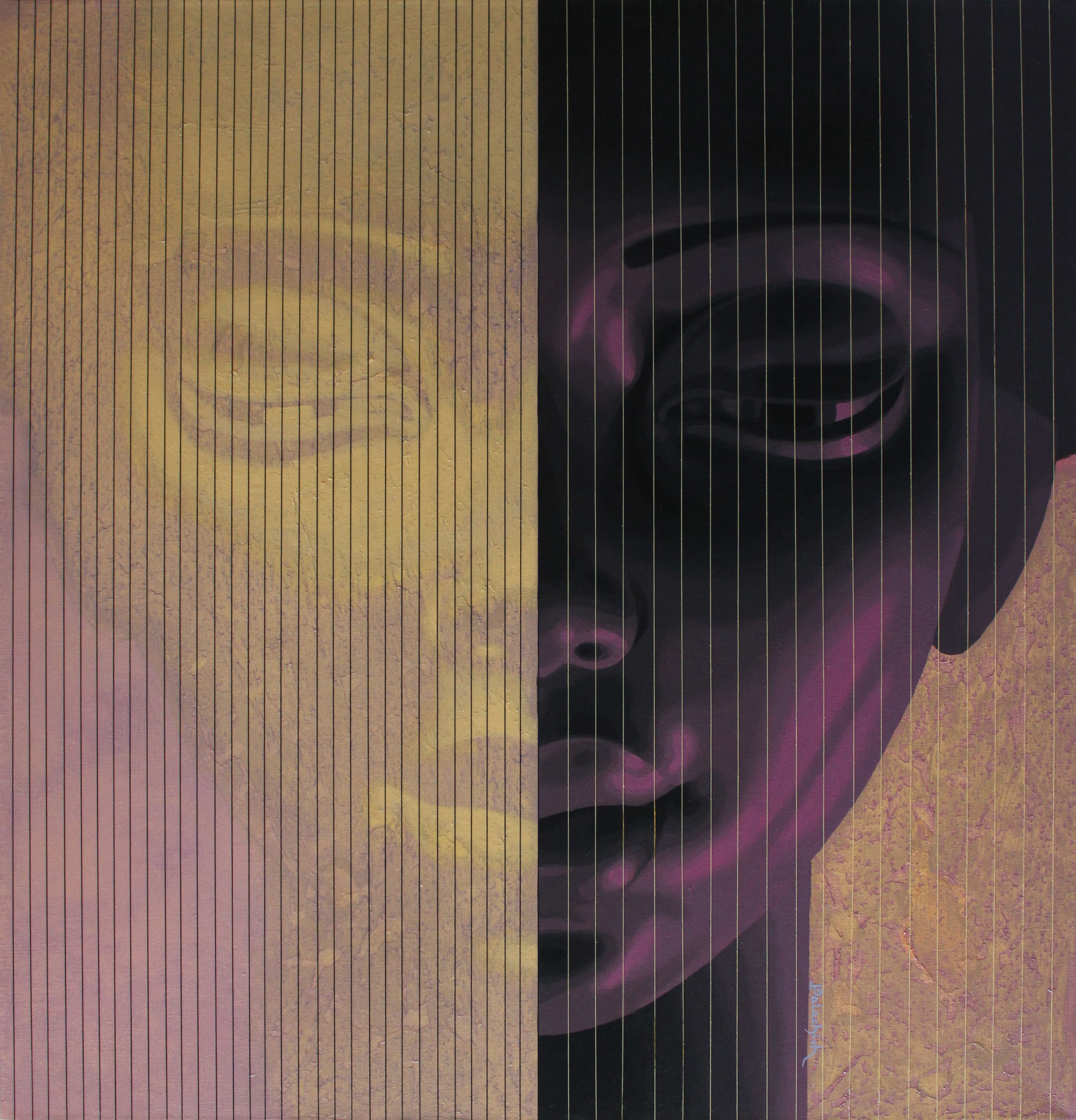 Холст/масло/акрил/искусственное золото, нитки, 100х96